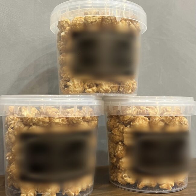 チェーン店ではなくオリジナルを自社キッチンにて製造しています。本場アメリカから輸入したマシーンで高温の熱風によるノンオイルなエアポップコーンをお届けします。